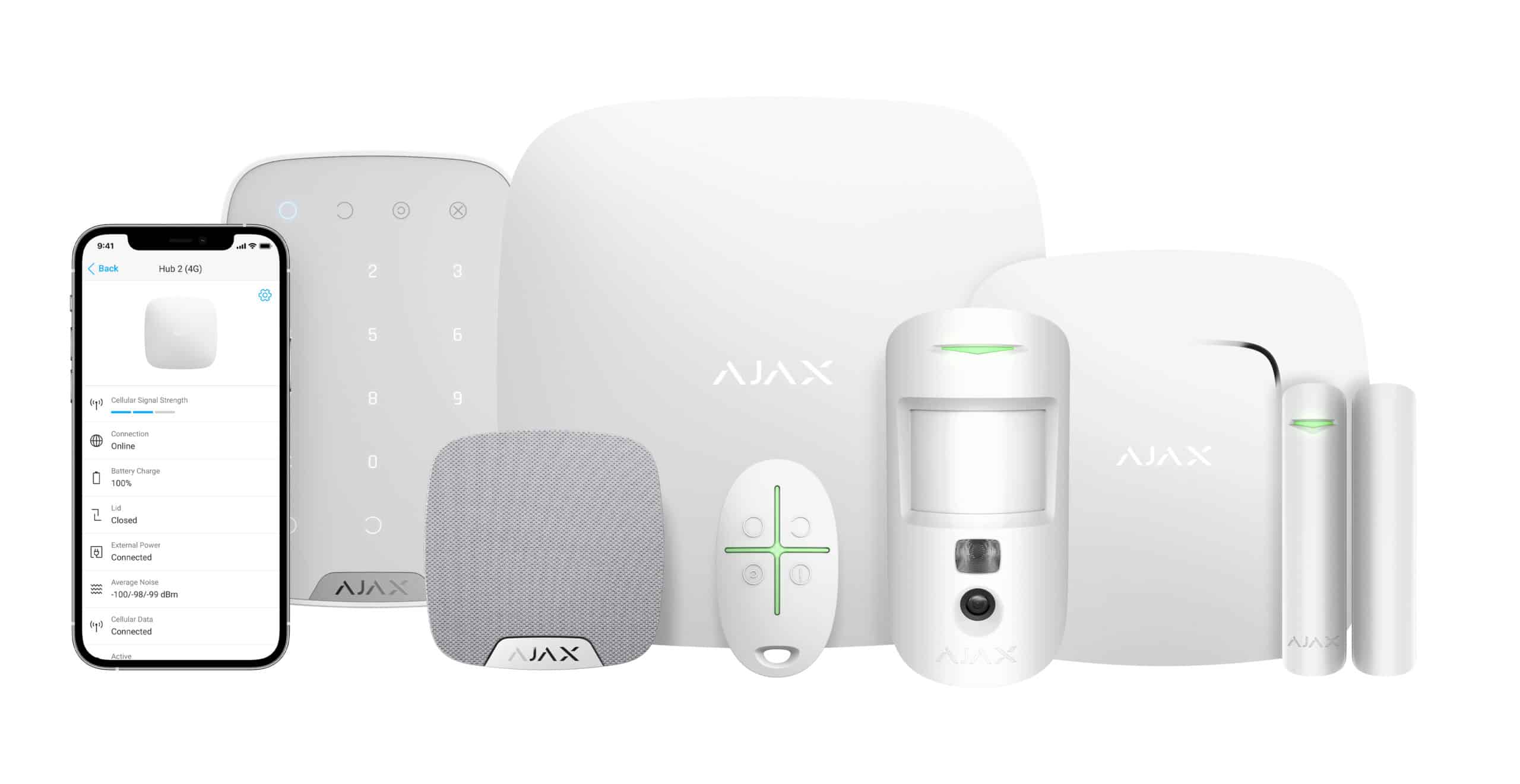 Ajax er EN 50131 Grade 2-certificeret, hvilket gør det velegnet til både private og erhverv. Systemet har backup-batteri, GSM-forbindelse og cloud-baseret styring via app.